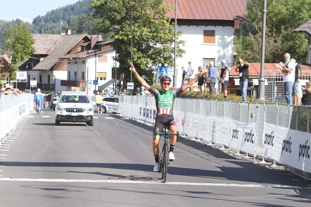 A 6 km dall’arrivo ecco l’affondo decisivo di Zurlo, che lascia la compagnia di D’Aiuto e si invola da solo verso il traguardo. A 4 chilometri dal traguardo Zurlo vanta 41” di vantaggio su D’Aiuto e 1’25” sul gruppo segnalato in forte recupero. Ma è troppo tardi. Zurlo ha un vantaggio rassicurante e tutto solo, festante e a braccia alzate, si presenta per primo sul traguardo di Tarvisio.