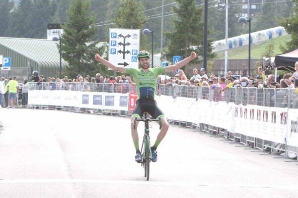 Agirre prosegue deciso nella sua azione, ma le pendenze sono difficili e la situazione cambia ancora. Sullo spagnolo si riporta l’altro iberico José Felix Parra Cuerda (Equipo Kern Pharma) che tutto solo si lancia al comando della corsa. Formidabile anche l’azione del tedesco Jonas Rapp (Hrinkow Advarics Cycleang) che a tre chilometri dall’arrivo riesce a riportarsi su Parra, pedala con lo spagnolo per un chilometro e poi, ai meno due dall’arrivo, piazza l’affondo vincente che gli permette di anticipare l’avversario sul traguardo.