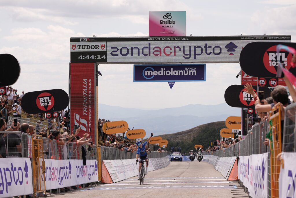 Monte Nerone, 12 luglio 2025 – La tappa regina del Giro d’Italia Women non tradisce le attese: Elisa Longo Borghini torna in Maglia Rosa a quasi un anno dall’ultima volta, mentre Sarah Gigante conferma la sua superiorità in salita conquistando il secondo successo di tappa dopo quello di Pianezze. L’australiana ha annullato uno svantaggio di quasi un minuto nei confronti di Longo Borghini, che – con il supporto di Silvia Persico – aveva accelerato a 20 km dal traguardo, poco prima dell’imbocco della salita finale. A 2700 metri dall’arrivo è arrivato l’attacco decisivo di Gigante, che ha proseguito in solitaria fino al traguardo, chiudendo con 45” di vantaggio sulla campionessa nazionale italiana. La Maglia Rosa Marlen Reusser, in difficoltà nel tratto conclusivo e superata anche da Isabella Holmgren, ha chiuso al quarto posto con un ritardo di 1’17” dalla vincitrice di giornata. In classifica generale, l’elvetica scivola al secondo posto a 22” da Longo Borghini, mentre Gigante sale sul terzo gradino del podio a 1’11”. La lotta per il successo finale sembra ormai un affare a tre, con i 134 km della tappa conclusiva da Forlì all’Autodromo Internazionale Enzo e Dino Ferrari di Imola che promettono un finale ricco di emozioni.