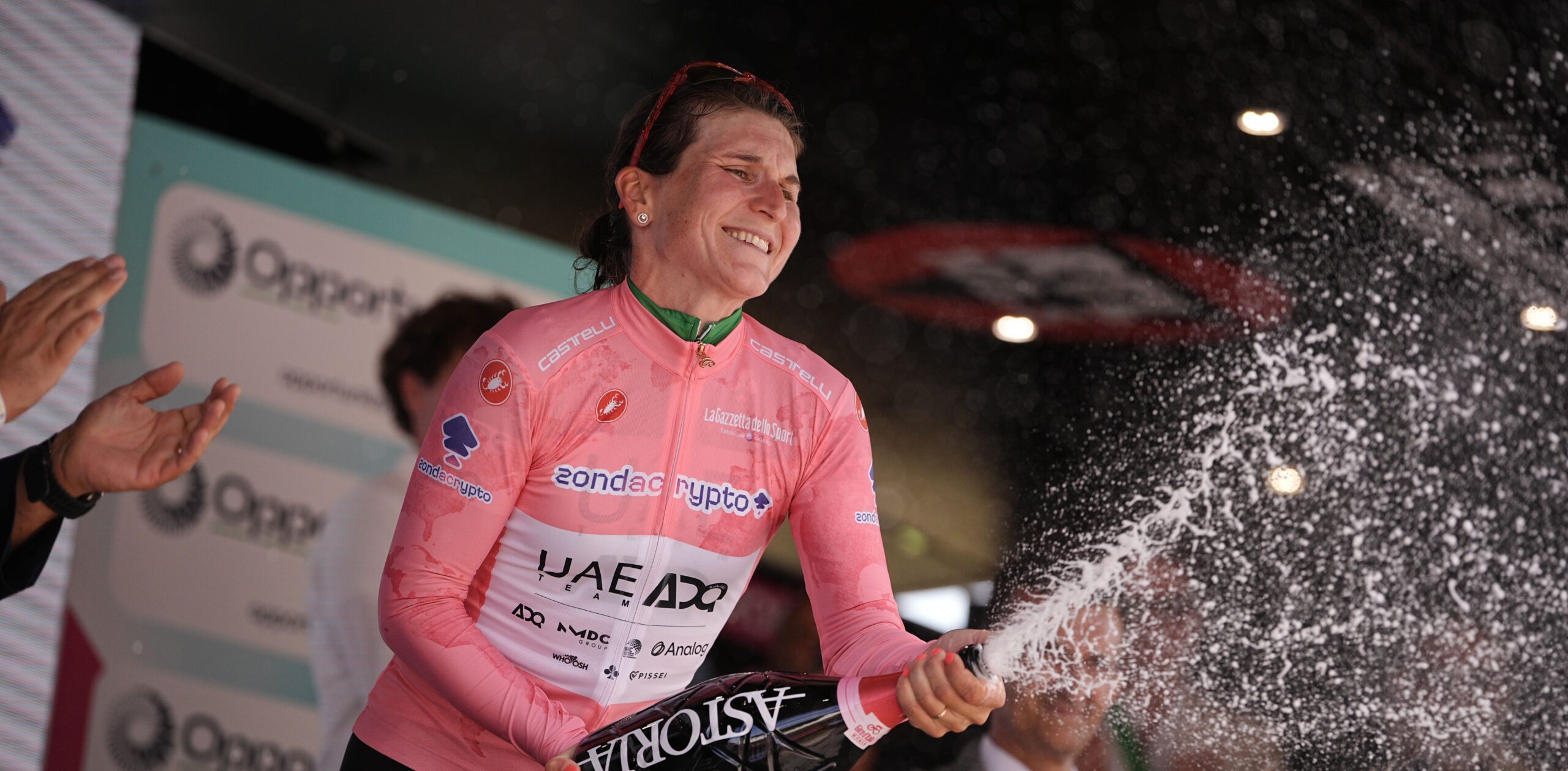 Maglia Rosa, leader della Classifica Generale, sponsorizzata da zondacrypto – Elisa Longo Borghini (UAE Team ADQ)