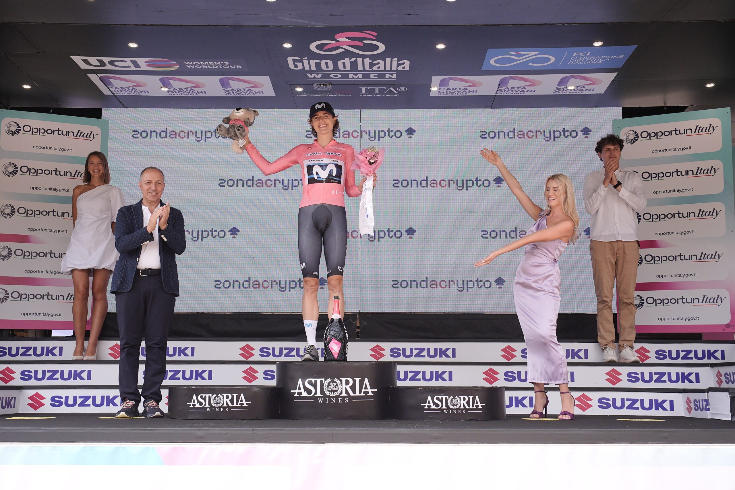 Maglia Rosa, leader della Classifica Generale, sponsorizzata da zondacrypto – Marlen Reusser (Movistar Team)