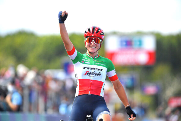 Già all’attacco nella prima parte di gara, la piemontese è rientrata in azione nel finale, al momento decisivo, ed è andata a cogliere una bella e importante vittoria in maglia tricolore. La francese Gladys Verhulst del Team Arkea-Samsic ha vinto lo sprint del ridotto gruppo principale, esultando a sua volta per il bel piazzamento. Terza l’americana Kristen Faulkner del Team Tibco-SVB.