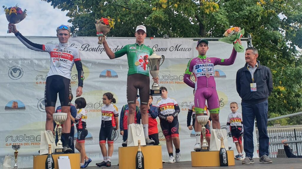 Terranuova Bracciolini, 27 settembre 2022 – Con una finale di corsa esaltante, il francese Jordan Labrosse ha conquistato per distacco il successo nella 52^ Ruota d’Oro-90° Gran Premio Festa del Perdono a Terranuova Bracciolini, gara internazionale per soli Under 23 organizzata dalla Futura Team con il Comitato locale e il patrocinio del Comune. Trentadue le società presenti per 154 atleti e gara dedicata al ricordo di Rossano Carsughi e Marcello Mealli per anni organizzatori della manifestazione che come sempre ha richiamato tantissimi sportivi lungo il Viale Europa. E qui si è presentato da solo il francese Jordan Labrosse autore di un finale di corsa straordinario. Il transalpino protagonista anche nel recente Tour de l’Avenire in Francia, ha staccato tutti in salita ed è volato al traguardo con un vantaggio di quasi mezzo minuto sul danese Foldager (Biesse Carrera) che ha preceduto di qualche metro un gruppo di una quindicina di corridori con terzo posto per il veneto Alex Tolio. Una corsa che si è decisa nel finale con le salite di Cima Monticello e Valcello che hanno frazionato il folto gruppo sulla testa e lanciato lo scatenato ed irresistibile Labrosse verso il successo.