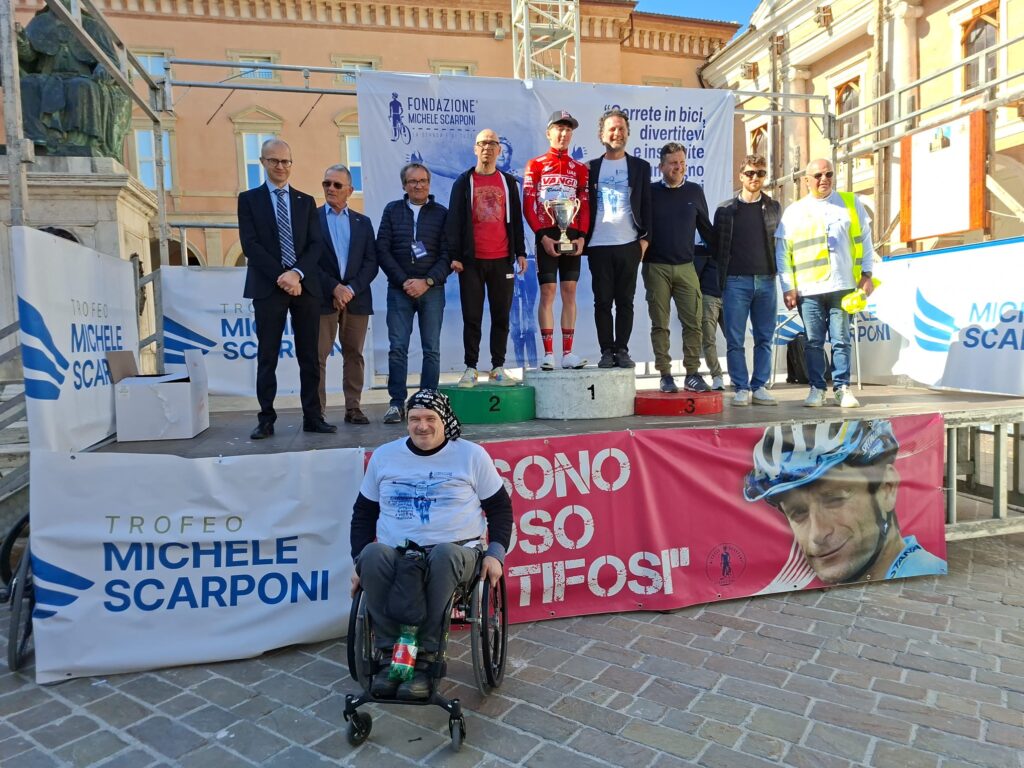 A testimoniarlo, tra gli altri, tanti addetti ai lavori e alcuni amici di Michele: l’ex professionista Gilberto Simoni, presente nella veste di direttore sportivo della formazione juniores della MBH Bank Cycling Team (squadra satellite della Professional MBH Bank Telecom CSB Fort), lo scalatore in carrozzina ed ex dilettante Luca Panichi, oltre alle autorità istituzionali e sportive tra cui il presidente CONI Marche Fabio Luna, il presidente regionale FCI Marche Massimo Romanelli e il presidente provinciale FCI Macerata Francesco Baldoni.