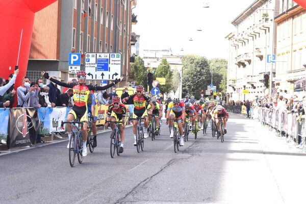 CREMONA (CR) – Periodo di forma straordinario per il modenese Francesco Calì che oggi ha vinto anche la classica 73/a Coppa Dondeo a Cremona. Il corridore della Aspiratori Otelli, medaglia di bronzo all’ultimo Campionato Italiano su strada e reduce dalla medaglia d’argento ottenuta ieri al Tricolore dell’Inseguimento a squadre con l’Emilia Romagna, oggi ha battuto allo sprint il compagno di squadra Giosuè Epis, mentre al terzo posto si è classificato Alessandro Romele della Ciclistica Trevigliese, il quale aveva provato ad anticipare la volata. Quarto il brianzolo Andrea Piras che ha completato la giornata trionfale della formazione bresciana. Per Calì si tratta della quinta vittoria dell’anno, tutte ottenute in poco più di un mese. (da bicitv.it)