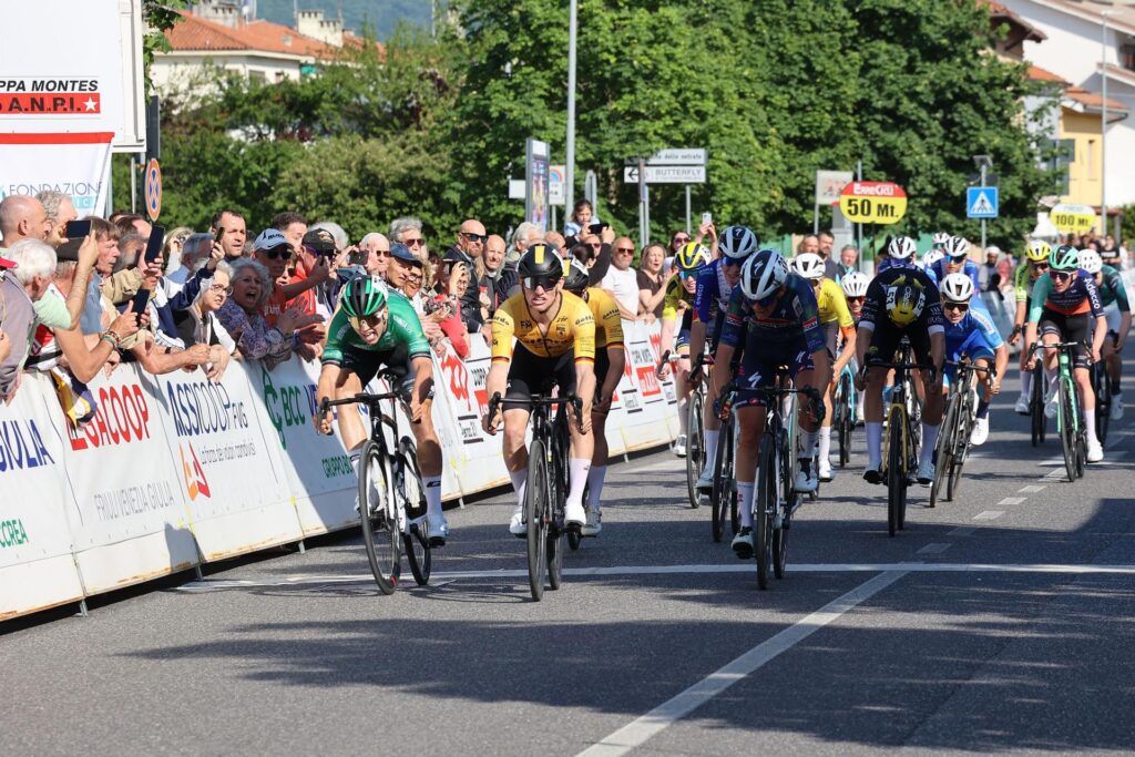 Un drappello che si allunga in salita e si ricompone sui tratti in falsopiano: a spezzare l’accordo in testa alla corsa, sull’ultimo dentello di giornata, quello di Sablici sono stati Ezra Bateman e Evander Wishart (Decathlon CMA CGM U19). Un tentativo di allungo che ha visto Wishart poi proseguire da solo mantenendo 20″ sugli inseguitori fino al cartello dei 3 chilometri dal traguardo. Negli ultimi due chilometri il gruppo torna compatto e si presenta così sul rettifilo d’arrivo di Monfalcone dove Nicola Padovan, grazie ad una straordinaria progressione, conquista il suo primo successo stagionale, il secondo in 24 ore per la Gottardo Giochi Caneva, a segno ieri nel Gp Liberazione di Roma con Pietro Deon. A completare il podio internazionale sono Vic De Smet (Soudal Quick-Step U19) e l’azzurro Brandon Davide Fedrizzi (Borgo Molino Vigna Fiorita).