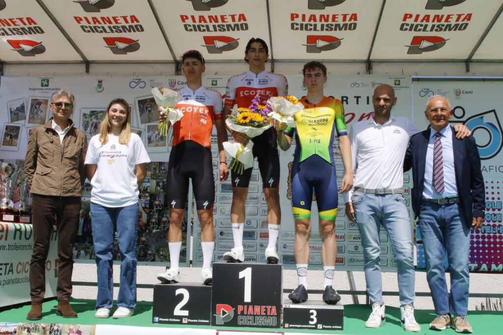 Giornata di grande ciclismo a Camignone con la vittoria di Filippo Cingolani che vince la volata ristretta di un gruppo di cinque corridori. A completare il podio sono il compagno di squadra del Team ECOTEK Zero24 Enrico Balliana, secondo, e Francesco Colosio (Team Guerrini Senaghese), terzo.
