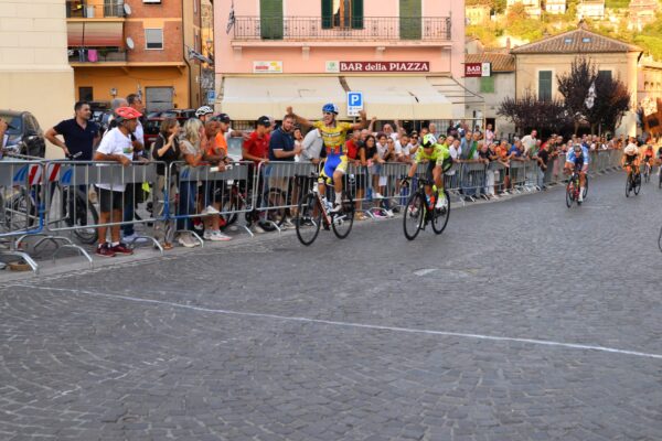 A due giri dalla conclusione, nel lungo braccio di ferro con il gruppo, il cui svantaggio passava da 1’40” a 55″, Davide Novelli (Trodica di Morrovalle) è riuscito a raggiungere i battistrada, dai quali ha perso terreno Rincon, che era già stato in fuga nelle primissime fasi. Novelli ha tentato in tutti i modi di proseguire l’azione da solo, ma a un giro dalla conclusione l’unico che è riuscito a creare un gap sugli altri attaccanti è stato Gianmarco Vicini, che ha voluto evitare la volata.