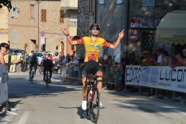 Dopo una serie di fughe neutralizzate nei primi 80 chilometri, la svolta in salita tra Petritoli e Monte Vidon Combatte: Paltrinieri, Samuele Uguccioni (Fior di Grano – Tris Stampi) e Sacha Salomone (CPS Professional Team) sono filati via dal gruppo dei migliori con 45″ di vantaggio. Nell’ultima salita, Paltrinieri ha attaccato in progressione e vinto in solitaria.