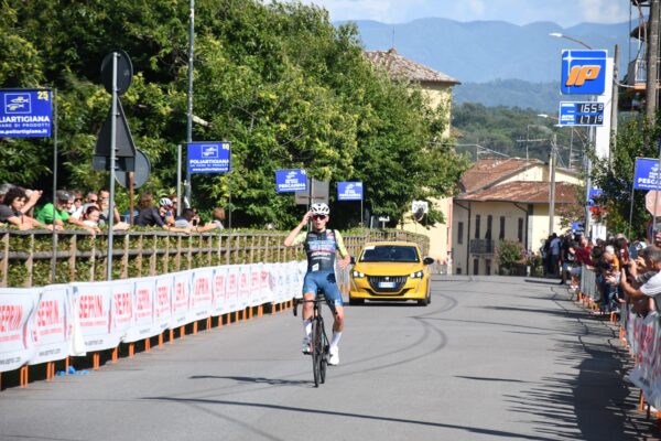 Barbarasco(MS),3 agosto 2025 – Cinquina stagionale e bis consecutivo dopo il successo in questa gara anche nel 2024, per uno scatenato Mattia Proietti Gaiardoni, il corridore umbro del Team Franco Ballerini Lucchini Energy che ha compiuto 18 anni due giorni fa. Il finale di Proietti Gaiardoni in questo Giro della Media Lunigiana, 21° Memorial Antonio Colò, gara nazionale per la categoria juniores con partenza da Albiano Magra e arrivo in salita a Barbarasco in provincia di Massa Carrara è stato strepitoso. Il vincitore ha impressionato chi era al seguito anche per la sua coraggiosa ed esaltante discesa lungo la quale ha dimostrato estrema lucidità giungendo a braccia alzate sul traguardo per il quinto successo stagionale.