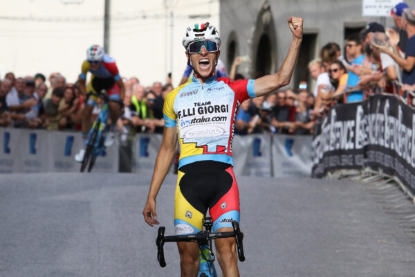 Borgo a Buggiano – Dopo le apprensioni degli organizzatori per la bufera di vento e pioggia del mattino scatenatasi nella zona, si è svolta regolarmente la 60^ Coppa Pietro Linari-Memorial Moreno Luchi, Silvano Cinelli e Poldo Rosellini, gara nazionale juniores organizzata dal Ciclistica Borgo a Buggiano. E l’edizione delle nozze di diamante è stata firmata da Stefano Leali al primo successo stagionale uscito con un allungo vigoroso a 1500 metri dal traguardo grazie anche all’apporto del compagno di squadra Vesco con lui nel quintetto che si è giocato il successo e che poi ha conquistato a 5” la seconda piazza sul toscano Savino, sul colombiano Pescador e sul canadese Leonard. Al via della Coppa Linari 30 squadre e 172 atleti con la presenza anche del c.t. della nazionale azzurra Edoardo Salvoldi. Prima del via ufficiale osservato un minuto di silenzio per ricordare la scomparsa di Giuliano Baronti. Avvio velocissimo, con una fuga di Bergamini e Privitera e prima ora di gara percorsa ad oltre 44 di media. Interessante una fuga dopo il 60° chilometro di un plotoncino di 8 corridori e bagarre nei tri giri finali con la salita di “Colle” con gruppo che tornava compatto attorno al centesimo chilometro. Nel penultimo giro gli attacchi di Bozzola, dello slovacco Nova e di Vesco. Con quest’ultimo iniziavano il giro finale anche Savino, il colombiano Pescador e Leali con 20” su sette inseguitori trascinati dal canadese Leonard che da solo con uno splendido inseguimento si riportava sul quartetto. E il successo se lo giocavano i cinque con i due atleti del Team F.lli Giorgi che nel finale provavano a ripetizione fino all’allungo decisivo di Leali a meno di due km dal traguardo.