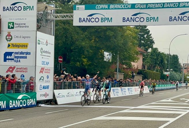 Legnano (Milano), 07 Ottobre 2024 – Stan Van Tricht, 25 anni belga di Lovanio e casacca del Team Alpecin-Deceuninck vince a sorpresa la 105° Coppa Bernocchi-Gran Premio BPM sua prima vittoria da professionista un successo inaspettato ma meritato dopo una lunga fuga iniziata dal 20emo chilometro di gara e durato fino all’arrivo praticamente per 150 chilometri. Sono felice di questo successo ha dichiarato Van Tricht subito dopo l’arrivo anche perché continuo la bella successione di vittorie belghe in questa corsa dopo Evenepoel nel 2022, Van Aert 2023 e io oggi. Altrettanto soddisfatto l’eroe di giornata, l’olandese Bart Lemmen (Visma) anche lui in fuga per 150 chilometri di cui gli ultimi 25 in completa solitudine e raggiunto sotto la fiamma rossa dell’ultimo chilometro. Bart Lemmen, è professionista da quest’anno ed è approdato al ciclismo da soli due anni congedandosi dall’Esercito olandese (Era un Ufficiale Pilota) per indossare scarpini e casco e….volare sui pedali. Merita assolutamente il premio di corridore più combattivo.