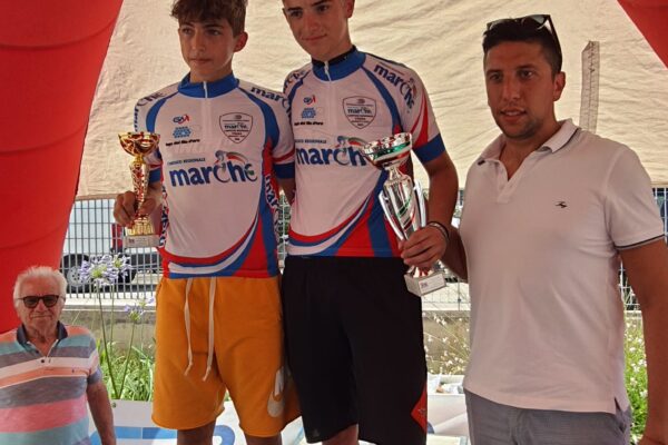 MONTECASSIANO – Su iniziativa del Veloclub Montecassiano, ha avuto luogo la seconda edizione del Trofeo CRB Orlature Tomaie che ha accolto il fior fiore tra atleti e società marchigiane ed extra-regionali per la categoria esordienti con la zona industriale di Montecassiano centro nevralgico della corsa che ha assegnato i titoli regionali FCI Marche. Nella gara riservata alle matricole di primo anno, splendida esibizione dei fratelli gemelli Filippo e Tommaso Cingolani (Team Cingolani) rispettivamente primo e secondo al traguardo, podio completato da Andrea Gabriele Alessiani (Pedale Rossoblu Picenum), quarto posto per Edoardo Fiorini (Pedale Chiaravallese). Con un leggero distacco di 5 secondi Mattia Romanelli dell’OP Bike (quinto) ed Emanuele Morganti del Pedale Rossoblu Picenum (sesto), settimo a 20 secondi Gioele Di Giacomo del Team Cingolani. A 1’10” il resto del gruppo con l’ottavo posto di Cristian Vargas (Velo Club Cattolica), il nono di Youssef Dahani (Alma Juventus Fano) e il decimo di Marco Grifone (Pedale Teate). Ad aggiudicarsi l’ambita vittoria nella gara dei secondo anno Edoardo Tesei (Alma Juventus Fano) che ha avuto la meglio su Teo Lancioni (Pedale Chiaravallese), Christian Giacobbi (Rinascita), Mirko Sgherri (Alma Juventus Fano), Stefano Cavalli (Velo Club Cattolica), Lorenzo Di Santo (Team Go Fast), Federico Rotini (Team Go Fast), Giorgio De Angelis (Stampi Italia Civitanova Bike Academy), Tommaso Arduini (Alma Juventus Fano) e Matteo Magnoni (Alma Juventus Fano).