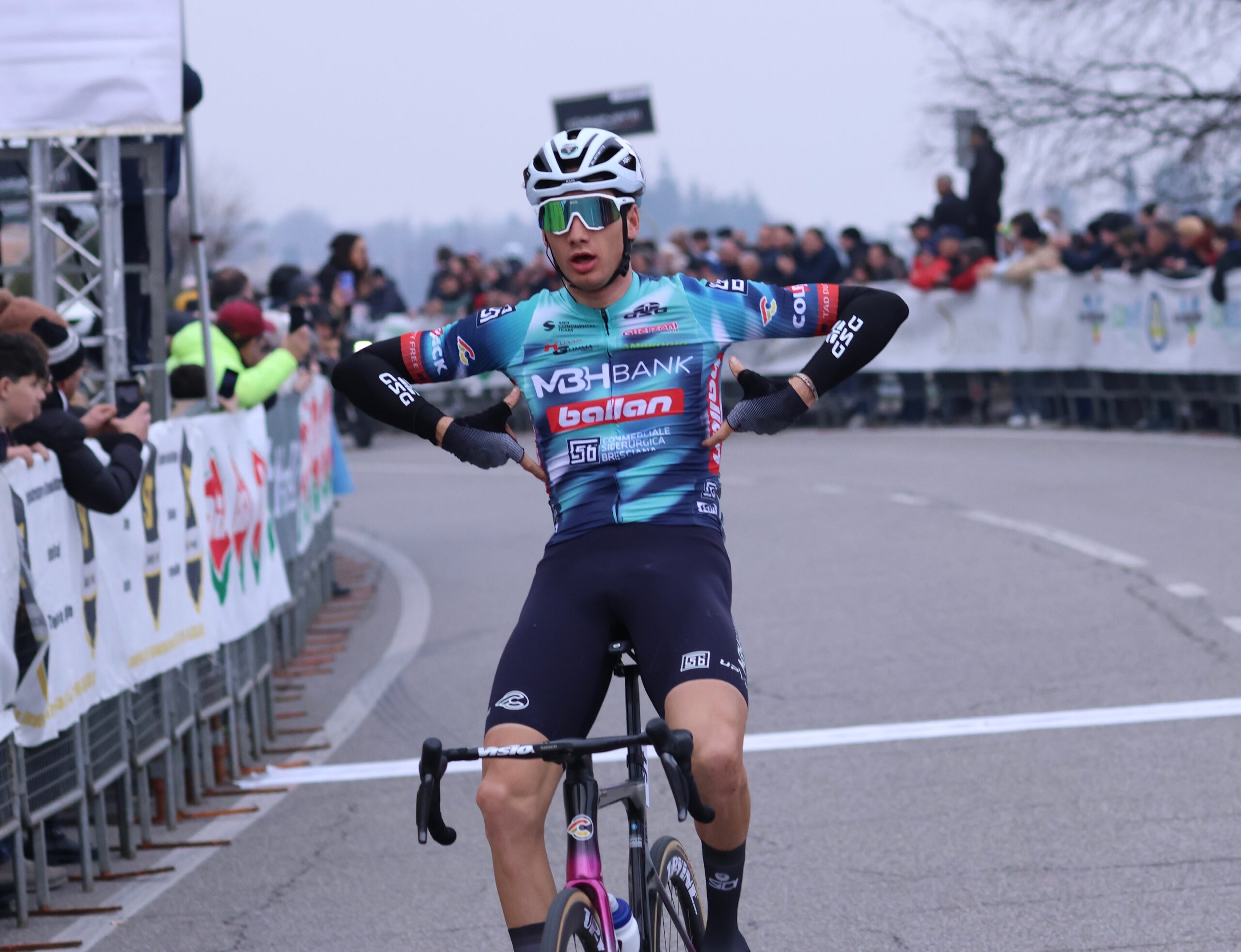 Padenghe del Garda (BS) – Il vicentino Matteo Ambrosini, portacolori del Team Colpack, ha conquistato con autorevolezza la 101^ Coppa San Geo – 55° Trofeo Caduti Soprazocco. La competizione, partita da Ponte San Marco e conclusa a Padenghe del Garda dopo 164,650 km, ha visto il corridore dell’Altopiano di Asiago imporsi con un leggero vantaggio su Cristian Remelli (General Store), compagno di fuga negli ultimi dieci chilometri. Il numeroso pubblico presente ha assistito a una gara spettacolare, applaudendo i protagonisti di giornata.