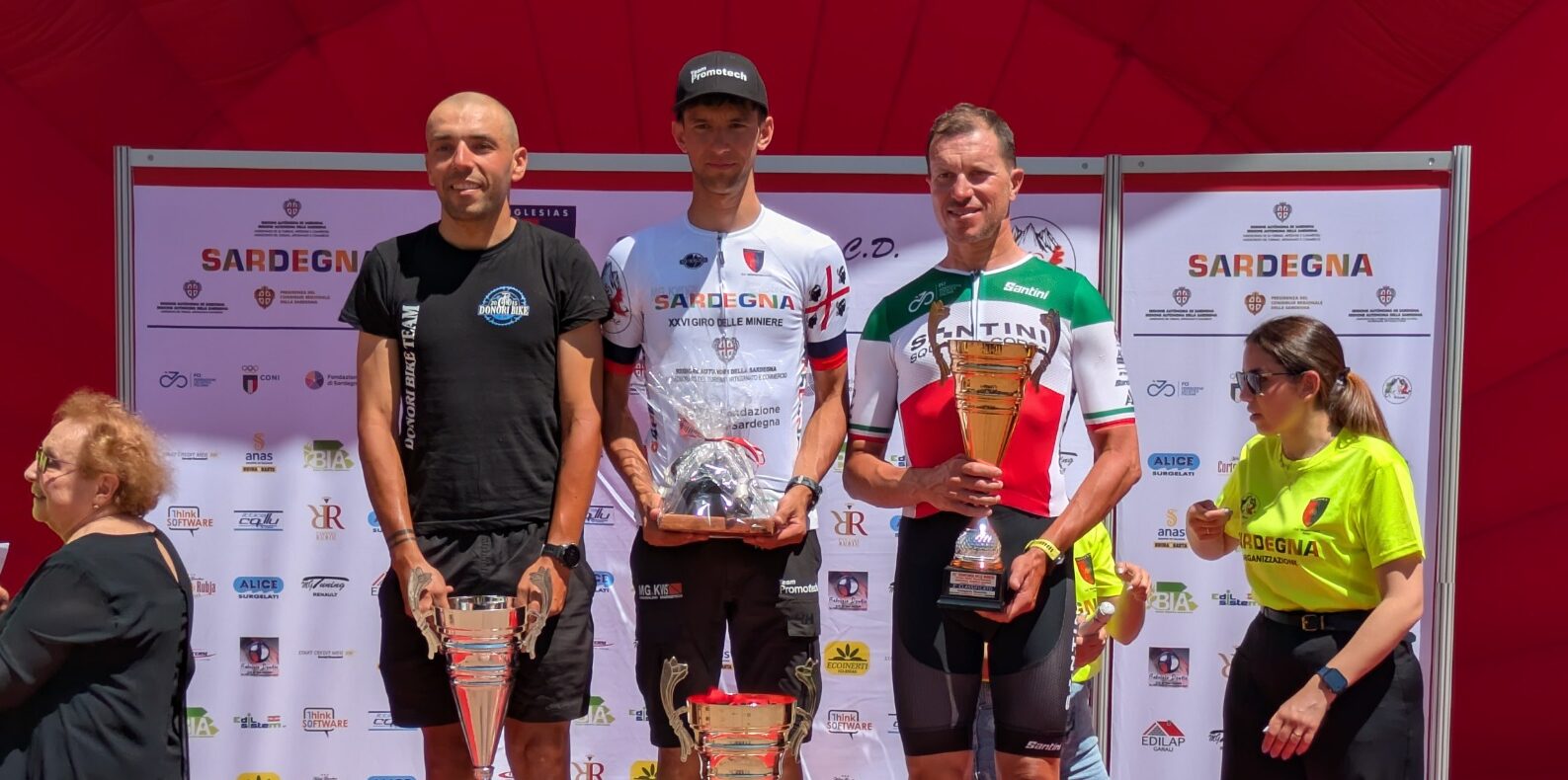 “Percorso bellissimo, molto caldo. Menomale che l’organizzazione dava bottiglie d’acqua” ha dichiarato il vincitore prima delle premiazioni: “Ringrazio la squadra che mi ha dato una mano sulla salita più lunga. Se me l’aspettavo? Parto sempre con un po’ di stizza ma pensavo di far bene” . Demiri è diventato il nuovo detentore della maglia bianca, strappata momentaneamente al belga Michel Heydens della ASD Sanetti Sport Grisù. Sembra invece che nessuno potrà toglierla ad Antigone Payne, che ad Iglesias ha bissato il successo ottenuto ieri nella Coppa Città di Villamassargia. La statunitense si è messa alle spalle il Gran Fondo delle Miniere in 3h47’44’’722, con un margine di 3’44’’ dalla seconda classificata Michela Gorini. Sul gradino più basso del podio ha trovato posto Olga Cappiello con un distacco di 14’24’’.