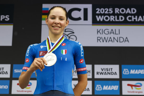 Terzo podio per l’Italia ai Mondiali in Ruanda. Dopo il bronzo conquistato da Federica Venturelli nella cronometro Under 23 e il trionfo di Lorenzo Finn nella prova in linea di categoria, è arrivato anche l’argento di Chantal Pegolo tra le juniores. Una prestazione corale straordinaria, con ben tre azzurre in lotta per le medaglie fino all’ultimo giro. L’oro è andato alla spagnola Paula Ostiz. Terza Anja Grossman, quinto posto per Giada Silo, che non ha retto i metri finali.