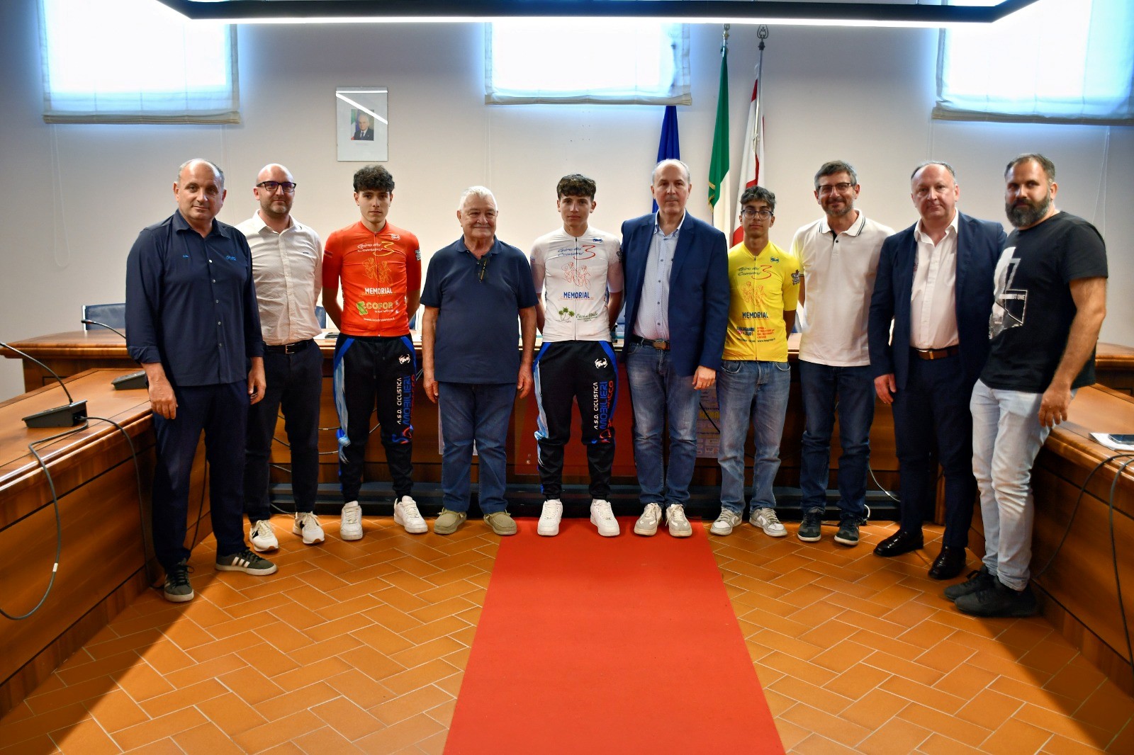 Nella Sala consiliare del Comune di Crespina Lorenzana presentata la terza edizione del Giro dei Tre Comuni-Memorial Silvano Marchetti, gara a tappe per allievi (quest’anno a tempi e non a punti) organizzata dalla Ciclistica Mobilieri Ponsacco in programma da sabato 31 maggio a lunedì 2 Giugno. A fare gli onori di casa il sindaco David Bacci e l’assessore allo sport Marco Romboli, presenti il vicepresidente della Federciclismo Saverio Metti, il presidente del Comitato Regionale Toscana di ciclismo Luca Menichetti, quello del C.P. di Pisa Benedetto Piccinini, i dirigenti del ciclismo Nencetti, Dolfi, Bani, il presidente della società organizzatrice Franco Fagnani, i due direttori di corsa Francesco Zingoni e Gabriele Tordiglione. Venti le squadre iscritte delle quali 11 toscane più una Rappresentativa Regionale e otto quelle extraregionali per un totale di 96 atleti dei quali 57 toscani. Tra le società iscritte le prime tre per numero di vittorie in campo nazionale la Petrucci Zero 24 Cycling, la toscana Iperfinish di Fucecchio, la Work Service Coratti. Sabato la prima tappa sarà una cronometro di km 8,500 da Cenaia (quartiere generale per le tre giornate l’azienda Oasi del Verde di Claudio Macelloni) a Crespina, con arrivo in Piazza Cesare Battisti di fronte al comune. Prima partenza alle ore 14, gli altri ogni minuto. Domenica 1° giugno partenza (ore 14,30) ed arrivo a Cenaia della seconda tappa di km 63 con un circuito di km 12,500 da ripetere cinque volte. Lunedì 2 Giugno ancora il via dall’Oasi del Verde di Cenaia (ore 15) ed arrivo nel Viale Italia a Ponsacco presso l’Enoteca Le Melorie dopo un percorso di 66 km con la salita di Peccioli. Tre le maglie del Giro, quella bianca del leader della classifica, la gialla per il miglior giovane di 15 anni, la rossa per i traguardi volanti. Il Giro dei Tre Comuni-Memorial Silvano Marchetti è patrocinato dai comuni di Crespina Lorenzana e Ponsacco.