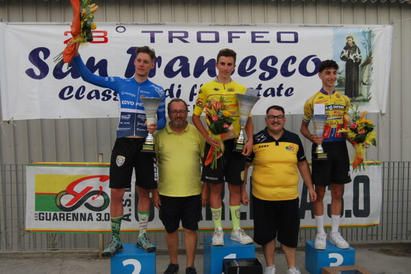Il ciclismo su strada sta entrando nel vivo del finale di stagione anche in Abruzzo e a Guarenna di Casoli come tradizione si colloca il Trofeo San Francesco, l’ultima sfida dell’anno per la categoria juniores organizzata dall’Asd Guarenna 3.0 con la partecipazione di 69 corridori in rappresentanza di 18 team, impegnati a loro volta sul percorso classico di 114 chilometri (da e per Guarenna di Casoli) con il circuito iniziale tra Pian delle Vigne, Selva di Altino e Vicenne, a seguire quello con la doppia ascesa verso Casoli paese.