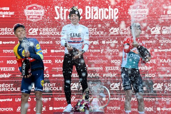 Toms Skujins, secondo, ha detto: “Non è una vittoria, ma il secondo posto dietro a Tadej Pogacar è molto buono. Se qualcuno mi avesse detto che oggi sarei arrivato secondo non ci avrei creduto, però è una corsa a cui puntavo da tempo, quindi sono davvero felice. L’arrivo qui a Siena è speciale, la gente, la folla, il rumore. Non c’è gara che si avvicini alla Strade Bianche. Le mie gambe urlavano dal dolore, ma il calore della gente sulla strada mi ha aiutato oggi. In un certo senso ha alleviato il dolore”.