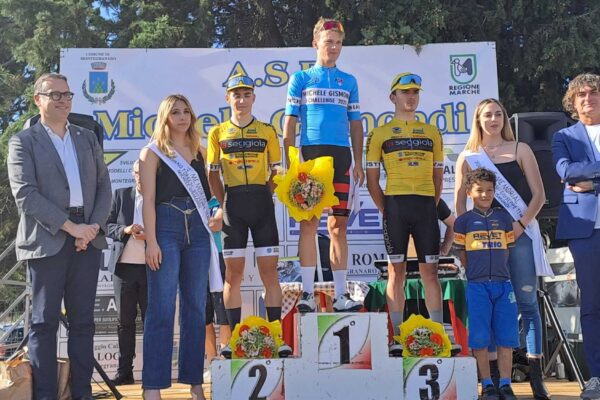 MONTEGRANARO – Realizzata per mano dell’Asd Team Ciclistico Michele Gismondi, ha avuto luogo a Montegranaro la prima edizione del Memorial Silvano Torresi, Giuseppe Temperini e Michele Gismondi per dilettanti under 23 ed élite su un percorso di 134,6 chilometri con una serie di circuiti che si sono intersecati tra di loro nelle località limitrofe Casette d’Ete, Bivio Cascinare, Porto Sant’Elpidio, Sant’Elpidio a Mare e Monte Urano, oltre alla città veregrense che ha ospitato la partenza e l’arrivo. Sono stati 86 i corridori alla partenza (in rappresentanza di 17 squadre) ma tra questi ha avuto ragione l’olandese Eduard Hoeks Daan (Maltinti Lampadari) tra i protagonisti principali della corsa insieme al valoroso compagno di fuga Lorenzo Boschi (Gragnano Sporting Club). La prima parte della gara è filata liscia, senza troppi sconvolgimenti, poi nel finale da un tentativo di 16 corridori hanno avuto via libera i due attaccanti che potevano contare su un vantaggio importante negli ultimi 15 chilometri. Tra cambi regolari e il vantaggio che si dilatava sempre di più, sopra i 40 secondi, la vittoria è diventata un affare a due con Hoeks che coglieva il primo successo stagionale battendo Boschi. Con un distacco di 45 secondi, la terza piazza è stata conquistata da Matteo Niccoli (Gragnano Sporting Club) che sempre in una volata a due ha regolato il polacco Kamil Szymacha (VPM Moretti SCS), a seguire il resto degli inseguitori con diversi distacchi: dalla quinta alla decima posizione nell’ordine Nicolò Garibbo (Gragnano Sporting Club), Francesco Di Felice (Maltinti Lampadari), Samuele Rubino (UC Pregnana-Team Scout), Francesco Parravano (Aran Cucine-Vejus), Simone Roganti (D’Amico) e Alessio Ninci (Gragnano Sporting Club). Alla premiazione hanno presenziato Endrio Ubaldi (sindaco di Montegranaro), Gastone Gismondi (assessore allo sport di Montegranaro), Lino Secchi (presidente regionale FCI Marche), Marco Lelli (presidente del comitato provinciale FCI Ascoli-Piceno Fermo) e Nazareno Gismondi, figlio di Michele ex gregario di Fausto Coppi.