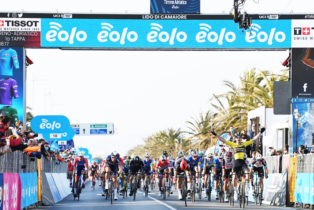 Lido di Camaiore – Un’altra edizione da Oscar per la 56^ Tirreno-Adriatico, con tante stelle, anzi questa volta più di sempre. E in Versilia per la tappa inaugurale una scontata volata di gruppo con il ventiseienne belga Wout Van Aert ad imporsi con una volata lunga, capace di resistere al tentativo di rimonta di altre due grandi favoriti dello sprint come Ewan e Gaviria finiti ai posti d’onore. Per il vincitore della Jumbo Visma naturalmente la maglia azzurra di leader della classifica, mentre merita di essere segnalato il quarto posto di Vendrame, con Ballerini che ha ottenuto l’ottava posizione.