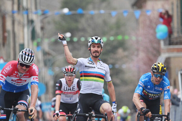 - Terza vittoria di tappa per Julian Alaphilippe alla Tirreno-Adriatico, dopo le due tappe vinte nel 2019, a Pomarance e Jesi. Ha vinto altre due gare in Italia: Milano-Sanremo nel 2019 e il campionato del mondo su strada nel 2020.