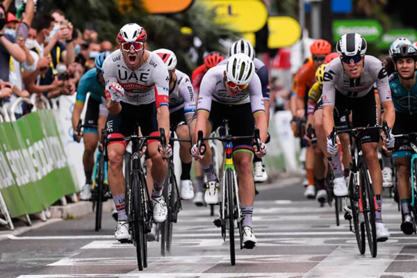 La volata conclusiva è stata preda del norvegese Alexander Kristoff (UAE Team Emirates), che veste così la prima maglia gialla. Sul podio il campione del mondo Mads Pedersen (Trek-Segafredo), terzo Cees Bol (Team Sunweb), quarto Sam Bennett (Deceuninck – Quick-Step), quinto Peter Sagan (Bora – Hansgrohe), sesto Elia Viviani (Cofidis) e settimo il neo campione europeo Giacomo Nizzolo (NTT Pro Cycling), rimasto un po’ chiuso nello sprint.