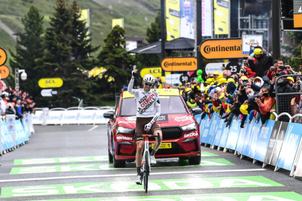 Ha vinto la battaglia contro il duo colombiano composto da Sergio Higuita (EF Education-Nippo) e il nuovo leader della classifica della montagna Nairo Quintana (Arkéa-Samsic) e considerato l’ampio vantaggio acquisito, in alcuni frangenti è stato anche maglia gialla virtuale. Ha staccato i due colombiani, poi ripresi dal drappello di inseguitori, e si è involato solo verso il successo.