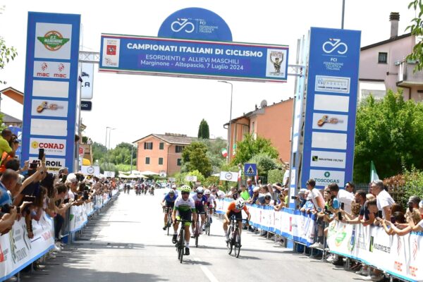 Marginone,7 luglio 2024 – Splendida sfida tra plurivittoriosi della categoria esordienti 2° anno compresa la volata finale, a conclusione del Campionato Italiano di Marginone. Ha vinto la maglia tricolore Riccardo Longo del Team Serio alla sua sedicesima vittoria nella stagione su 17 gare disputate, davanti al laziale Fiacco autore di 11 vittorie ed al piemontese Soldarini con 6 successi. E’ stato un sestetto a giocarsi il successo allo sprint in dirittura di arrivo con pochissimi secondi di vantaggio nei confronti del primo drappello di inseguitori. I battistrada hanno guadagnato la testa della corsa ai piedi della salita di Montecarlo (percorsa per due volte) riuscendo a resistere alla caccia che si è scatenata alle spalle. In volata il lombardo Longo ha dovuto fare i conti con Fiacco riuscendo ad avere la meglio e conquistando un titolo che rende onore fino in fondo alla sua bravura. Per la Toscana in questa gara decimo posto per Laerte Scappini. Al via 126 gli atleti di 14 anni, in questa rassegna tricolore organizzata dall’U.S. Marginone Toscogas. ORDINE DI ARRIVO: 1)Riccardo Longo (Lombardia) km 46,600, in 1h12’20”, media km 38,632; 2)Andrea Fiacco (Lazio); 3)Lorenzo Soldarini (Piemonte); 4)Alberto Todaro (Friuli Venezia Giulia); 5)Luis Jimenez Macas (Bolzano); 6)Pier Jimenez Macas (Bolzano) a 2”; 7)Simone Marconi (Lombardia) a 7”; 8)Lorenzo Lodovisi (Umbria); 9)Leonardo Grimaldi (Marche); 10)Laerte Scappini (Toscana).