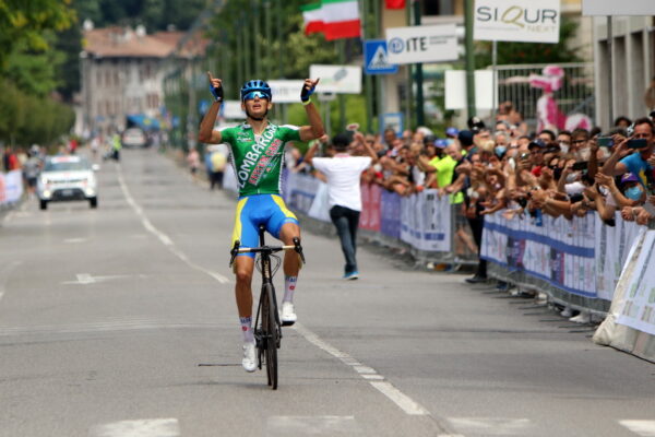 Il gruppetto al comando però perde i pezzi in salita, ma è in un tratto in pianura che Romele accelera e prende il largo. Affronta da solo già il primo passaggio sul muro, sembra un’azione azzardata la sua e invece, pennella alla perfezione ogni curva in discesa, incrementa il suo vantaggio in pianura e nell’ultimo giro arriva a guadagnare fino a oltre 1’30” sui due più immediati inseguitori che sono diventati il veneto Edoardo Zamperini e l’emiliano Federico Biagini.
