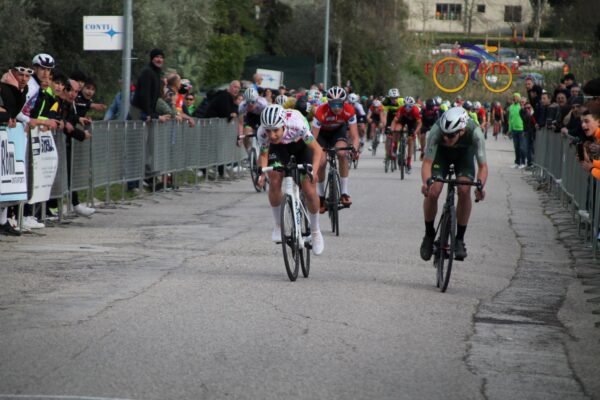 Giri ridotti a cinque per gli esordienti con partenza unica e stesso epilogo sullo strappo di contrada San Giuseppe dove a mettersi in luce sono stati Omar Berlini (GC Fausto Coppi), Riccardo Barbini (Zero24 Cycling Team) e Riccardo D’Andrea (Pedale Teate) tra le matricole di primo anno, Byran D’Ettorre (Bike Academy Fuorisoglia), Antonio Lippolis (Un Dente in Più-Piccole Canaglie-Spes) e Vittorio Longari (UC Città di Castello) tra le matricole di secondo anno.