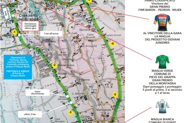 Il tracciato presenta una salita che potrebbe fare emergere atleti completi. A Pieve del Grappa, dove sono previsti la partenza e l’arrivo, ad ogni giro sarà assegnato un punteggio per il Gran Premio della Montagna (con l’ascesa rivolta al Monte Grappa in onore dei caduti della Grande Guerra) e nel passaggio a Fonte ad ogni tornata ci sarà un traguardo volante a punteggio che determinerà l’assegnazione delle maglie. Al vincitore della corsa andrà quella del di leader del Gran Premio F.W.R. Baron-Progetto Giovanni; a quello della Classifica della Montagna, la Verde che riporta il logo di Pieve del Grappa e per quella dei Traguardi Volanti è prevista la Bianca con quello di Fonte. A godere i favori dei pronostici alla vigilia è Matteo Scalco, portacolori del Borgo Molino Rinascita Ormelle, che fino ad ora ha totalizzato un 2° posto (il 10 aprile a Pescantina, in provincia di Verona, nel 22° Gran Premio Salumificio Pavoncelli) e un 3° piazzamento (il 25 aprile a Monfalcone, in provincia di Gorizia, nella 67^ Coppa Montes Nazionale). A loro vanno aggiunti anche un 4° e un 5° posto. Lo stesso corridore, in virtù del 4° piazzamento ottenuto domenica primo maggio alla 45^ Piccola Tre Valli Varesine di Villadosia di Casale Litta (Varese), si è portato al secondo posto della classifica provvisoria del 10° Gran Premio Nazionale F.W.R. Baron con 52 punti quando lo era in terza con 45. Di conseguenza ha scavalcato Thomas Capra (Assali Stefen) che è rimasto a quota 45 ed è passato in terza posizione; mentre il leader della graduatoria continua ad esserlo Lorenzo Conforti (Work Service Speedy Bike) con 55. Alle loro spalle Pitro Mattio (Vigor Cycling) e Pavel Novak (Ciclistica Trevigliese) rispettivamente con 40 e 31 punti.