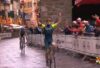 Ma c'è un colpo di scena incredibile: in un tratto di passaggio del circuito in una strada di campagna, un cane affianca i corridori in fuga, Retailleau, probabilmente si spaventa, rischia di cadere e per evitarlo, d'istinto, si aggrappa alla schiena di Balestra e ne frena di conseguenza anche la sua azione. Della situazione prova ad approfittare Lapeira, già vincitore quest'anno all'internazionale di San Vendemiano, che tutto solo rilancia la sua azione e prova a volare verso il traguardo.
