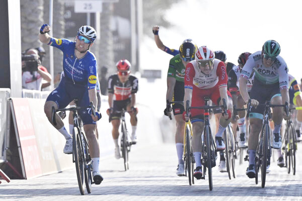 Palm Jumeirah (EAU) – Secondo centro di Sam Bennett (Deceuninck – Quick-Step) nella sesta tappa da Palm Jumeirah a Dubai.dell’UAE Tour 2021. L'irlandese ha sfruttato nel migliore dei modi la scia aperta da Michael Morkov. Ottimo secondo Elia Viviani (Cofidis), che ha dovuto rinunciare al supporto di Fabio Sabatini, caduto in vista del traguardo. Al terzo posto Pascal Ackermann (Bora-Hansgrohe).