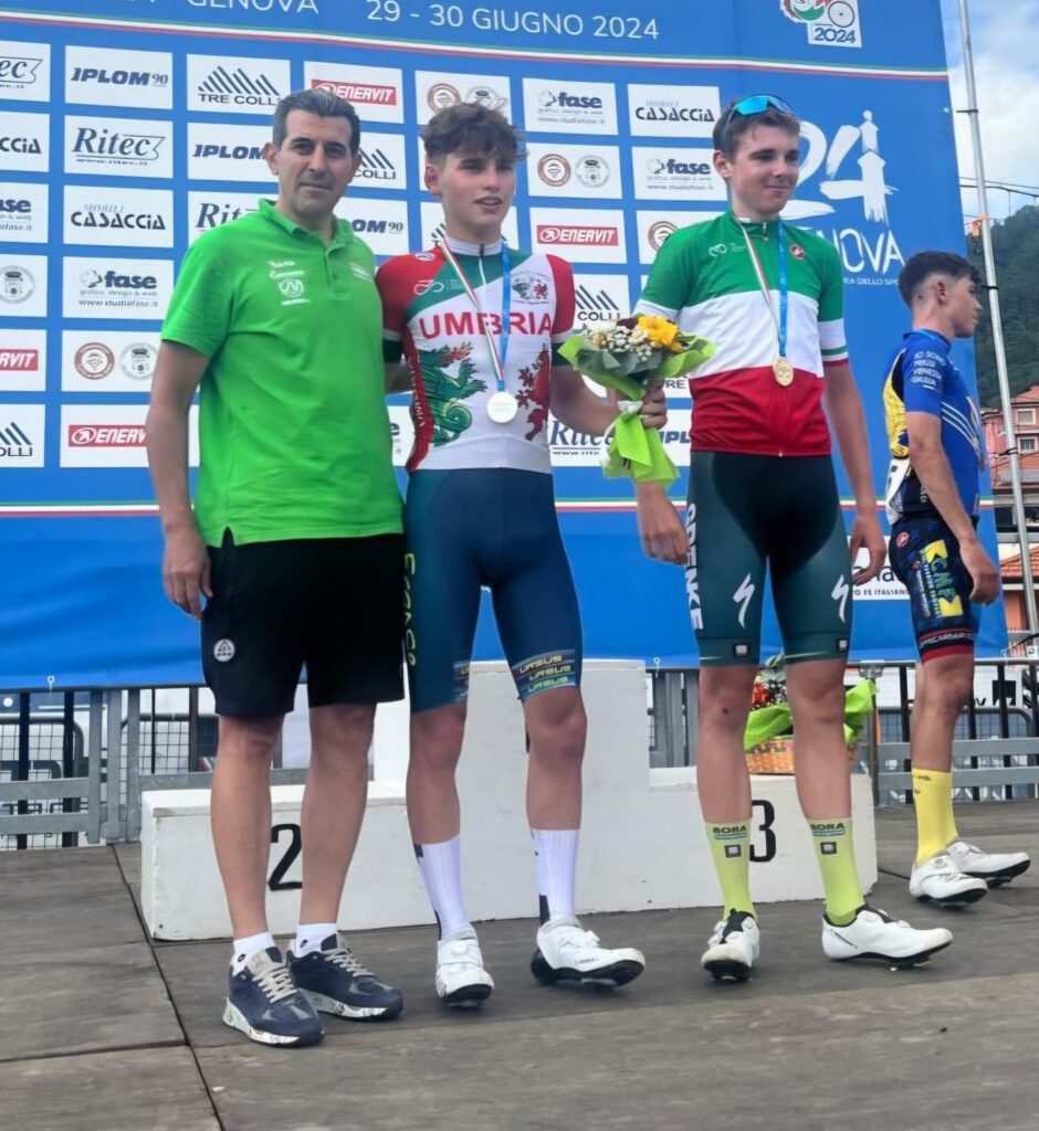 Una medaglia pesante sia per il singolo che per tutta la rappresentativa regionale Juniores, tornata a salire sul podio tricolore ad appena 2 anni di distanza dall’exploit di Edoardo Burani, sempre d’argento nella rassegna di Cherasco. Risultati che testimoniano la lodevole capacità del movimento ciclistico umbro di produrre talenti come Proietti Gagliardoni, tesserato da questa stagione con la compagine toscana del Team Franco Ballerini ma cresciuto a cavallo tra il 2021 e il 2023 tra le fila dell’Unione Ciclistica Foligno. Da rimarcare però la prova di tutto il gruppo guidato in Liguria dal Tecnico Regionale Eros Capecchi e dal Collaboratore Strada Sergio Spagliccia, con Luca Laudi (32°), Giacomo Serangeli (39°), Francesco Cornacchini (85°) e Tommaso Francescangeli (non al meglio fisicamente e costretto al ritiro) che hanno onorato al meglio delle loro possibilità la maglia della rappresentativa, dimostrando tutti di poter valere un palcoscenico di tale prestigio.