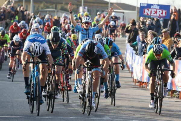 Cerbaia di Lamporecchio – Con una volata travolgente e confermando la sua fama di eccellente velocista, uno dei più forti in campo nazionale, il ligure Gabriele De Fabritiis che corre nella formazione campana CPS Professionale Team diretta dal direttore sportivo pistoiese Andrea Bardelli si è aggiudicato davanti a gruppo di 100 corridori la prima edizione del Gran Premio Giuliano Baronti sul pianeggiante circuito a Cerbaia di Lamporecchio. E’ stata una meravigliosa giornata di sport dedicata al ricordo di Baronti, dai figli Alessio e Stefano, con l’apertura stagionale juniores presenti 158 atleti di 22 squadre, tanti ospiti d’onore ad iniziare dal Governatore della Toscana Eugenio Giani e tantissimi sportivi. Dopo l’inno di Mameli e un minuto di silenzio per ricordare Giuliano, il via alla corsa su 10 giri del circuito pistoiese. Dopo il traguardo volante del quinto giro dedicato a Pietro Marradini e vinto da Tommaso Massi del Team Fortebraccio, l’unica azione che merita di essere ricordata ha visto per protagonisti al cinquantesimo chilometro Lorello e Gabelloni. Quest’ultimo è rimasto poi da solo ma all’inizio della tornata finale (9 km al traguardo) è stato raggiunto da gruppo e quindi l’epilogo finale sua Via Amendola nella zona industriale di Cerbaia di Lamporecchio con arrivo di fronte alla Neri Sottoli, ha visto sfrecciare per primo De Fabritiis nei confronti dell’ottimo umbro Scappini, campione italiano di ciclocross e di Maioli. Una splendida giornata il migliore regalo che Alessio e Stefano Baronti potevano dedicare al babbo Giuliano.