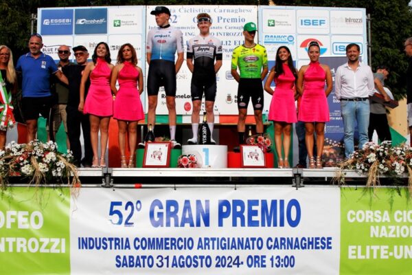 Splendido affondo del britannico William Harding, 22 anni appena compiuti, che vince in solitaria la 52° edizione del Gran Premio Commercio Industria Carnaghese staccando negli ultimi due chilometri di corsa il compagno di fuga Tom Martin (Project 1), britannico anche lui ed in fuga in accoppiata per gli ultimi 4 giri del Circuito del Seprio di km 17 a tornata per 10 volte invano inseguiti dalla coppia Marco Palomba (Generalstore) e Alex Raimondi (Beltrami Tsa).