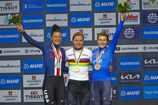 Nella volata conclusiva di un gruppo ristretto conquista il suo secondo titolo mondiale la belga Lotte Kopecky davanti alla statunitense Chloe Dygert e all’azzurra. “E’ stata una corsa veramente bella – ha detto la verbanese appena scesa dalla bici – mi sono divertita tanto.”