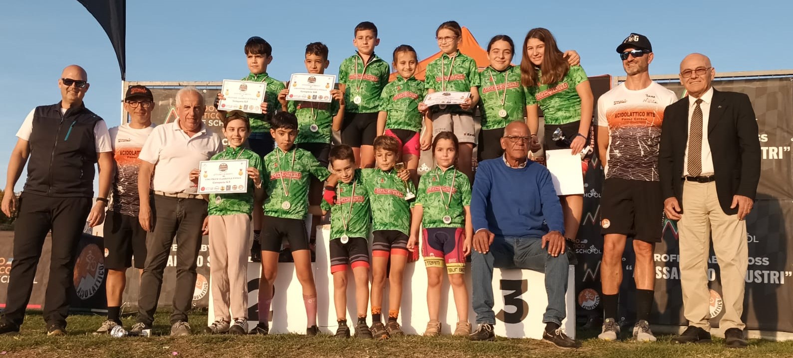 Record di iscritti per la tappa conclusiva del circuito Baby Cross Etrusco Sabino svoltasi Sabato scorso a Passo Corese con l’organizzazione dell’Asd Acido Lattico. Sono stati 200 i Giovanissimi che hanno risposto all’invito a partecipare alla quarta edizione del Memorial Alessandro Salustri ospitata nell’accogliente bike park comunale che l’Acido Lattico gestisce con cura da diversi anni. Nonostante l’elevato numero di partecipanti per ogni batteria la manifestazione è filata via in maniera agile e divertente fra il tifo scatenato di genitori e accompagnatori. A portare il saluto di FCI Lazio c’erano il presidente Maurizio Brilli, il suo vice Tony Vernile e il consigliere Fabio Rossetti. Assieme a loro il presidente del CP Roma Agildo Mascitti e il componente della Commissione Giovanile Daniele Festuccia. Dopo la stesura delle classifiche e arrivata la doppia premiazione che ha fatto sorridere i tanti bambini presenti. Per la classifica riservata ai team più numerosi ha centrato il primo posto la Village Bike davanti a Rocca di Papa Bike e Tibur Bike Team. Medaglie e diplomi anche per i protagonisti del circuito Baby Cross Etrusco Sabino che hanno ricevuto in ricordo della loro vittoria le maglie griffate Agganciotutto. Anche qui ad imporsi nella challenge a squadre è stata la Village Bike davanti a Tirreno Bike, Mentana Ciclismo, Rocca di Papa Bike, Tibur Bike Team e Castelli Romani Cycling. Ringraziamenti finali da parte degli organizzatori a tutti gli sponsor ed ai collaboratori che hanno supportato la gestione della densa giornata di gare. Si chiude così la stagione del fuoristrada under 12 ma non l’attività Giovanissimi che Sabato prossimo ad Atina offrirà un’altra occasione di confronto con l’ultima tappa del circuito Abilità e Velocità. In programma il mini trofeo Bastianelli Sprint & Gimkana ospitato nell’ampia piazza Volsci in località Ponte Melfa. Il ritrovo per la verifica iscrizioni è fissato alle ore 13 mentre la partenza della prima gara verrà data alle 15.30. L’organizzazione dell’evento è curata dal GS Sabina di Atina in collaborazione con la Fun Bike.