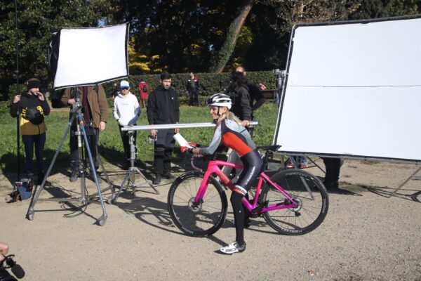 Firenze 17 novembre 2024 – Mattinata di festa, entusiasmo e partecipazione nel Parco delle Cascine a Firenze, dove sono state girate le riprese di un video per la promozione della sicurezza delle gare ciclistiche e la sensibilizzazione stradale, che andrà su varie emittenti televisive ed in altri contesti. L’iniziativa è stata ad opera del Comitato Regionale Toscana della Federciclismo presieduto da Saverio Metti in collaborazione con la Commissione direttori di corsa e sicurezza dello stesso Comitato che ha in Francesco Zingoni il suo presidente. Il video ha avuto nel ruolo di testimonial e protagonista, la nota conduttrice, attrice e cantante statunitense Justine Mattera, naturalizzata italiana che vive e lavora in Italia da 30 anni e che si è messa a disposizione dello staff organizzativo per girare il video, con esemplare disinvoltura, professionalità e bravura. Altra presenza preziosa e indispensabile quella di una ventina di corridori toscani tra juniores e dilettanti, che fatto da comparse nel video, e lo stesso ruolo lo avuto anche il pubblico presente ad assistere alle riprese.