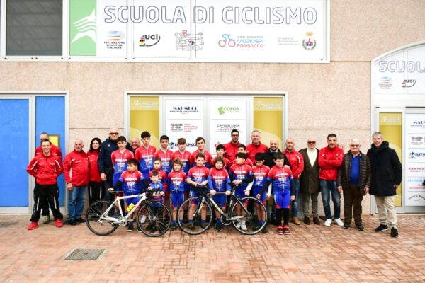 Ponsacco – Sette ore di una domenica indimenticabile per la Ciclistica Mobilieri Ponsacco. Di buon mattino il ritrovo e le foto in piazza Rodolfo Valli sede della società e del Comune, quindi alla Chiesa San Giovanni Evangelista per la benedizione impartita agli atleti, dirigenti, tecnici e ospiti da Don Armando Zappolini, infine presso il Centro Commerciale e la Galleria Aringhieri per l’inaugurazione dei locali sede della scuola di ciclismo, una splendida iniziativa voluta fortemente dal presidente della società Franco Fagnani, da Enrico Cocchiola, Massimiliano Vanni e dai loro collaboratori. E’ stato il sindaco di Ponsacco Francesca Brogi presente anche il vice Massimiliano Bagnoli e l’assessore allo sport Francesco Vanni, a tagliare il nastro tricolore ed aprire le porte degli accoglienti locali messi a disposizione dalla famiglia Aringhieri e strutturati secondo le esigenze richieste. Per il Comitato Regionale Toscana di ciclismo, intervenuti il vice presidente vicario Mauro Renzoni, il consigliere Federico Micheli il presidente del C.P. di Pisa Nicola Procino. Una scuola importante per accogliere chi vuole avvicinarsi al ciclismo con tutti i mezzi e servizi a disposizione. Esaurita la festosa cerimonia il pranzo sociale all’Enoteca Le Melorie sponsor della società grazie alla famiglia Fagnani, come la Ecofor Service, Giani Mila, Banca di Pisa e Fornacette, Autoscuola Toscana, Aringhieri Distribuzione, Marmugi Calzature, Elettropiccoli 73-51, Favilli Pneumatici. Presentate le tre squadre per un totale di 18 atleti. Sono gli allievi Matteo Cocchiola, Leonardo Cerbioni, Emanuele Anguillesi con Antonio Bonaccorsi quale direttore sportivo. Cinque gli esordienti: Lorenzo Losurdo, Francesco Danniballe, Samuele Bendinelli, Tommaso Terreni, Diego Donofrio diretti dal tecnico Marino Della Pace. Infine dieci giovanissimi con Francesco Losurdo allenatore. Sono Matteo e Dario Giordano, Giuseppe Bruno, Vittorio e Giulio Pisano, Dario Malacarne, Samuele Oliva, Francesco Bastiani, Gabriele Losurdo, Lorenzo Menchini.