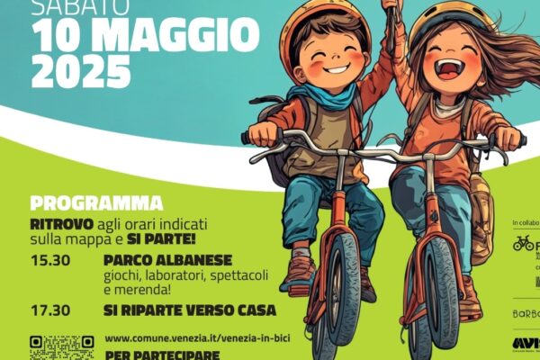 Mestre (Venezia) – Mancano soltanto pochi giorni alla manifestazione dedicata alla bicicletta e alla mobilità sostenibile per grandi e piccini organizzata dall’Amministrazione Comunale di Venezia. L’evento, denominato “Bimbinbici” che quest’anno è accompagnato dallo slogan “Il Futuro arriva in bicicletta”, prenderà vita sabato 10 maggio con il gran finale al Parco Albanese di Mestre in piazzale Divisione Acqui dalle 15.30 alle 18.30 circa. Il 10 maggio sono previsti 11 percorsi guidati in bicicletta, con ritrovo nei diversi quartieri della terraferma ed arrivo al Parco Albanese, dove ad aspettare i piccoli ciclisti e le loro famiglie ci saranno eventi con musica, giochi, laboratori, merenda e premiazioni. Una manifestazione, come ha ricordato l’Assessore alla Mobilità e Viabilità, Francesca Zaccariotto che “è molto più di una semplice pedalata ma è un’occasione per riscoprire insieme il piacere di muoversi in modo sostenibile e divertente”. L’assessore ha ribadito, inoltre, che Bimbi in Bici “è anche un’opportunità per incentivare l’utilizzo delle numerose piste ciclabili presenti sul territorio comunale. Una manifestazione che coinvolge famiglie, scuole e comunità in un momento di festa, condivisione e sensibilizzazione. Eventi come questo ci ricordano l’importanza di promuovere l’uso della bicicletta fin dalla giovane età. E proprio per valorizzare l’impegno delle scuole, quella con il maggior numero di iscritti riceverà un nuovo portabiciclette: un riconoscimento concreto a sostegno di una mobilità sostenibile anche nella quotidianità”.