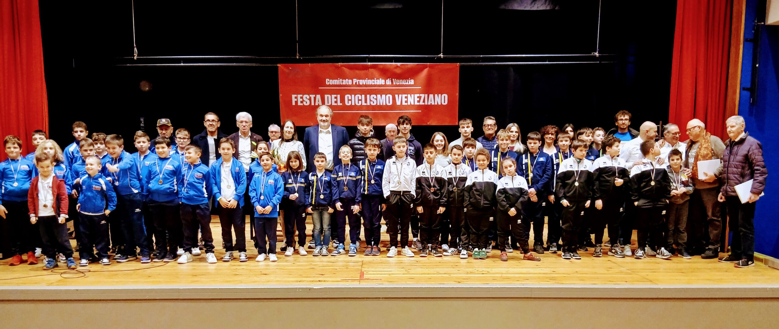 SCORZE’ (VENEZIA) – E’ stata una bella e grande festa che nella serata di sabato 29 novembre ha coinvolto in una interessante parata dei campioni, delle società e dei loro dirigenti al Teatro Elios di Scorzè, in provincia di Venezia, in occasione della Festa del Ciclismo Veneziano voluta dal nuovo presidente Giuseppe Clementi e che ha inteso premiare tutti i protagonisti della stagione 2025. Alla cerimonia, condotta dell’esperto e storico Luciano Martellozzo, sono intervenuti i consiglieri della Federciclismo del Veneto, Paolo Bassanello e Gloria Marton, il Delegato del Coni di Venezia, Raffaele Sartorato e quello dello Sport del Comune di Scorzè, Amedeo Calzavara.