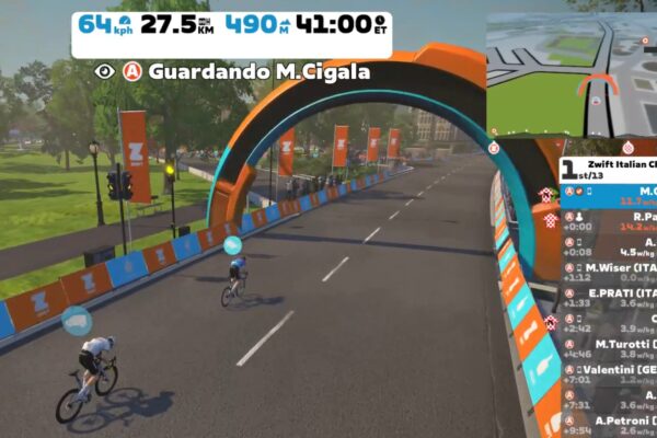 La prima prova del Zwift Italian Challenge, che si è svolta sabato 10 dicembre, ha visto il successo di Matteo Cigala, già azzurro lo scorso anno al primo mondiale UCI Esport ed uno dei più forti rider del circuito Zwift. Ma non è stata una ‘passeggiata’ per l’alfiere della Wahoo Le Col – Team Dan Morrissey, che ha dovuto sudare le proverbiali sette camice per avere la meglio, in volata (nella foto), di Riccardo Panizza del Team Comobike ASD – Team Castelli. Al terzo posto Alessandro Barra, portacolori del Panaché A.S.D. Team Castelli.