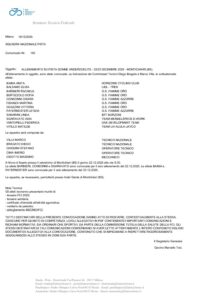 Le atlete BARBIERI, CONSONNI e SGARAVATO sono convocate per il solo allenamento del 22.12.2025. Le atlete BAIMA e PATERNOSTER sono convocate per il solo allenamento del 23.12.2025.