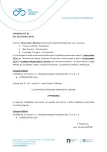 Il giorno 19 novembre 2024 la Commissione Nazionale Elettorale, così composta: