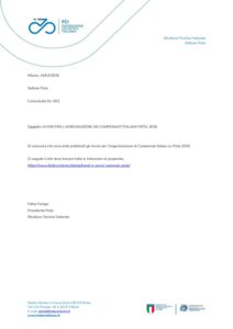 AVVISI PER L’ASSEGNAZIONE DEI CAMPIONATI ITALIANI PISTA 2026
