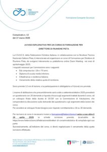 La C.N.D.C.S. della Federazione Ciclistica Italiana, in collaborazione con la Struttura Tecnica Nazionale Settore Pista, è intenzionata ad organizzare un corso di Formazione per Direttore di Riunione Pista, da svolgersi interamente su piattaforma online Zoom Meeting nei mesi di aprile/maggio 2025.