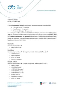 si è riunita per la verifica dell’ammissibilità delle candidature presentate entro il 21 novembre 2024 per l’Assemblea Elettiva Ordinaria Provinciale convocata per il giorno 1° dicembre 2024 dal Comitato Provinciale FCI di Bergamo, per l’elezione di numero 7 in rappresentanza degli Affiliati all’Assemblea Elettiva Ordinaria Nazionale e per l’elezione degli organi provinciali – Quadriennio Olimpico 2025/2028.