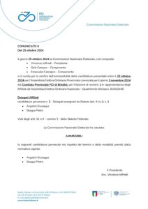 Il giorno 25 ottobre 2024 la Commissione Nazionale Elettorale, così composta: